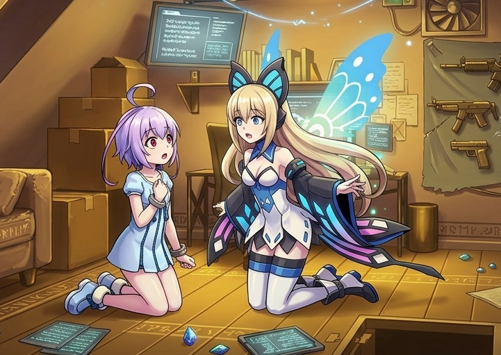 “閃蝶”過去曾是皇神集團的國民虛擬偶像,對外發表其為人工智能。不過,實際上,是シアン第七波動"電子謠精"具現化的存在,擁有獨立的自我,個性自由奔放,其實也是シアン的其中一面。因為這樣,經常被認為與シアン是不同的人。